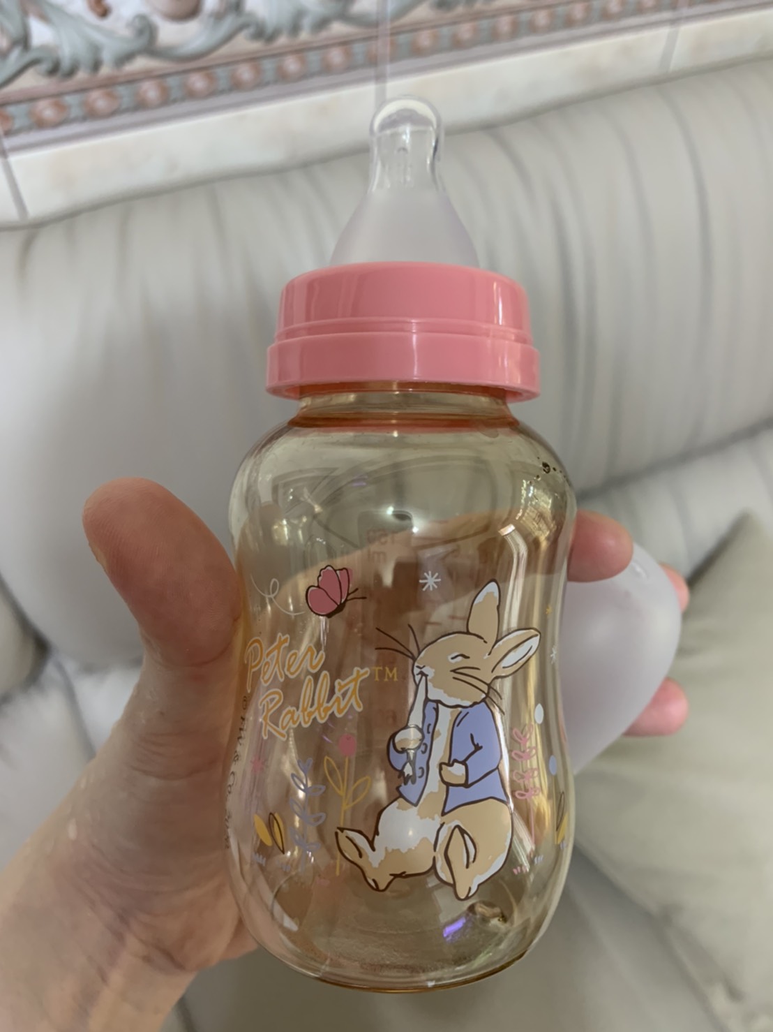 比得兔圖案真的很療癒,而且這支奶瓶是PPSU材質,可以耐高溫到180度~