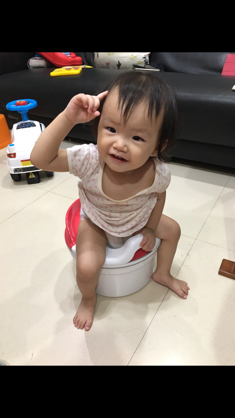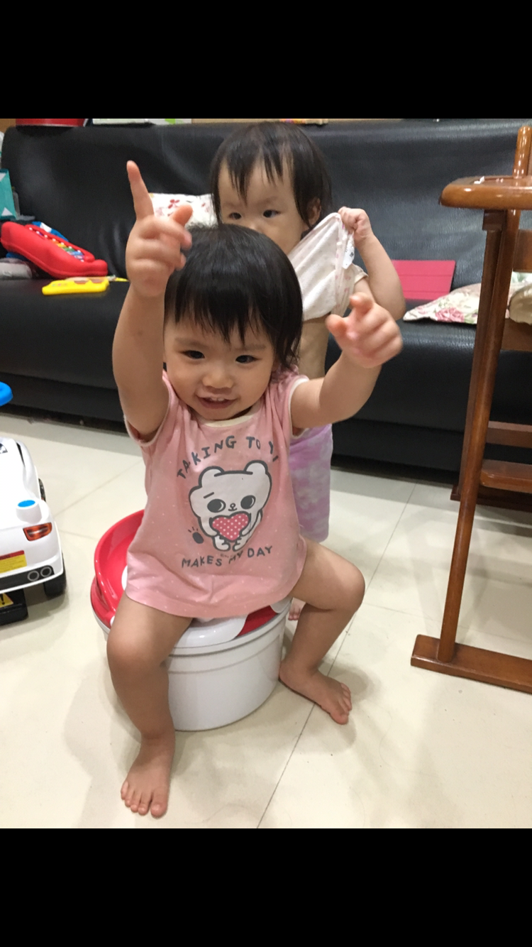 說也奇怪,當我一把便盆放下,家中的兩位小女孩就很感興趣的圍過來,完全沒有排斥,很喜歡的開始東摸摸西摸摸,然後就當一般椅子一樣的坐上便器,完全不需要教,使用便器的姿勢是一百分,兩位可愛的小寶貝還爭奪著想坐上便器呢!