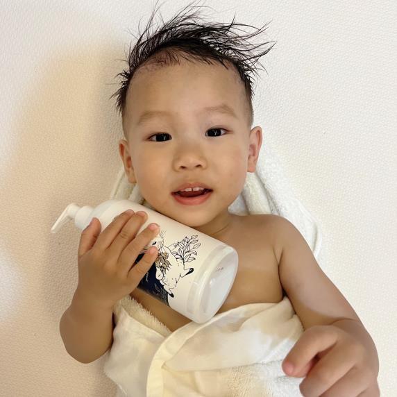▍以前洗澡要分別用洗髮精與沐浴乳,洗一次澡常常搞得浴室一片混亂,現在一瓶搞定,不但省空間、節省時間,也減少瓶瓶罐罐的刺激成分重複堆疊在寶寶肌膚上的風險,對忙碌的家長來說真的是一大福音。