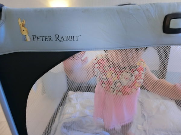 出門在外無法帶居家的圍欄,有了比得兔雙層遊戲床就能將寶寶放進裡面,