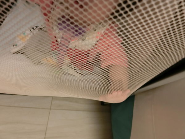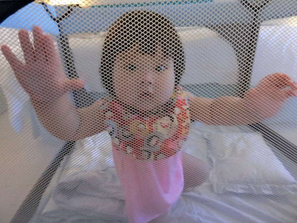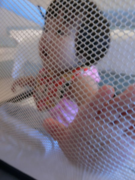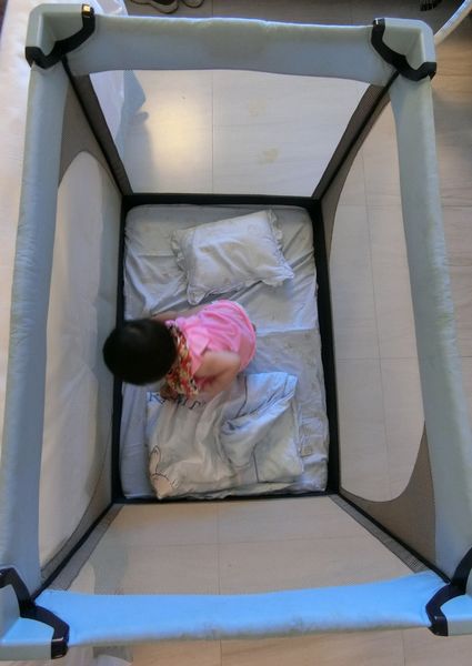樂妹可以自行玩樂,ㄚ爸ㄚ母也可以透過網狀床圍探查寶寶狀況。