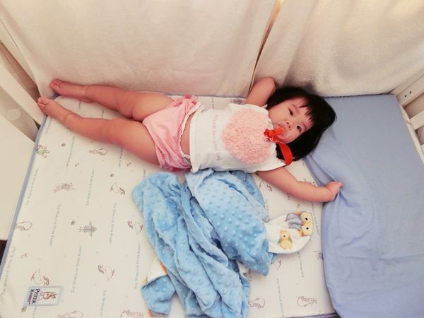 樂妹還是嬰兒時期,我們不放心讓她躺海綿床墊,最後我們選擇用大毛巾鋪床。