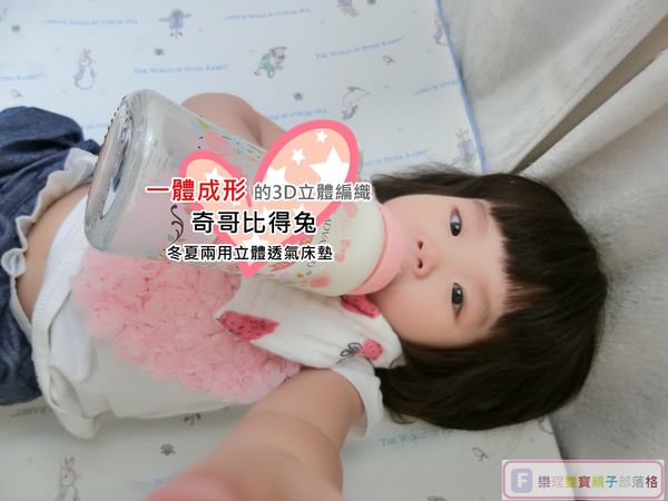 很期待媽咪拜提供 會呼吸的床墊~奇哥比得兔冬夏兩用立體透氣床墊讓怕熱的樂妹體驗。